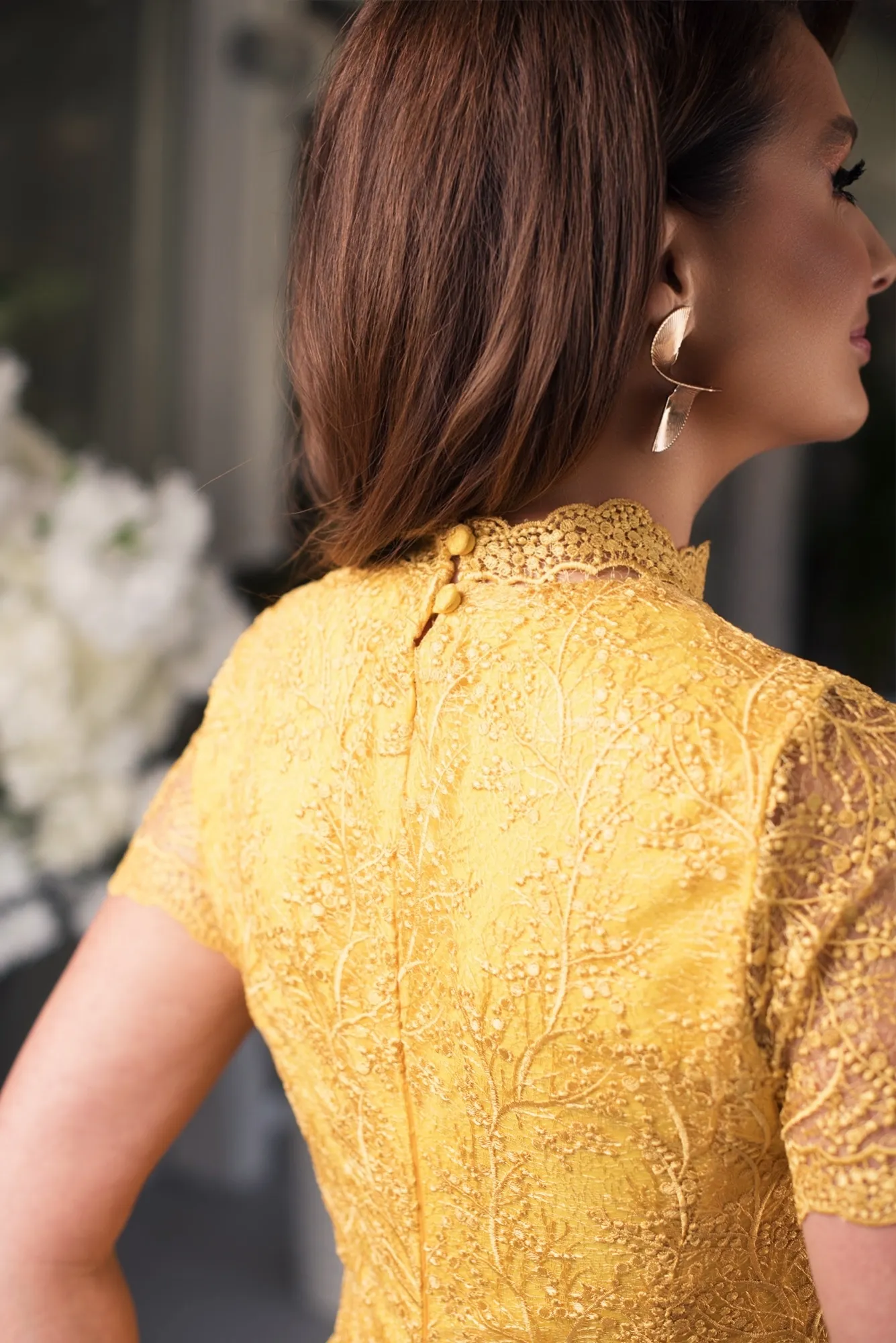 din colecția Lace your Moments by OrletteStrălucirea soarelui de vară prinsă într-o rochie – “Golden Grace” este expresia pură a feminității luminoase. Realizată din dantelă fină, într-o nuanță intensă de galben, această rochie scurtă îmbrățișează silueta cu grație și eleganță. Croiala conturată pune în valoare formele naturale, în timp ce gulerul înalt și mânecile delicate din dantelă adaugă un aer sofisticat și contemporan.