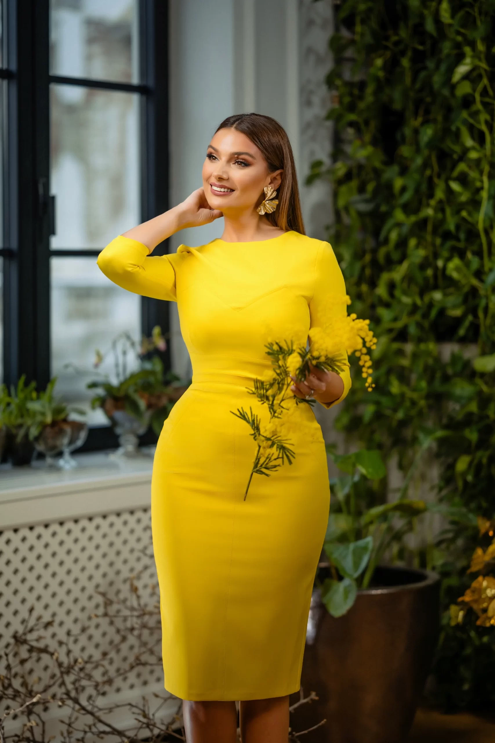 din colecția Orlette – In BloomUn strop de soare purtat cu grație. Rochia Mimoza din colecția Orlette in Bloom este declarația perfectă de stil și prospețime și reinterpretează feminitatea modernă printr-un galben aprins, plin de viață. Croiala sa impecabilă evidențiază silueta cu linii curate, tăieturi arhitecturale și cusături duble ce alungesc optic forma corpului. Decolteul delicat, la baza gâtului, și mânecile trei sferturi adaugă o notă de eleganță subtilă, perfectă pentru femeia care îndrăznește să lumineze încăperea fără să ridice vocea.